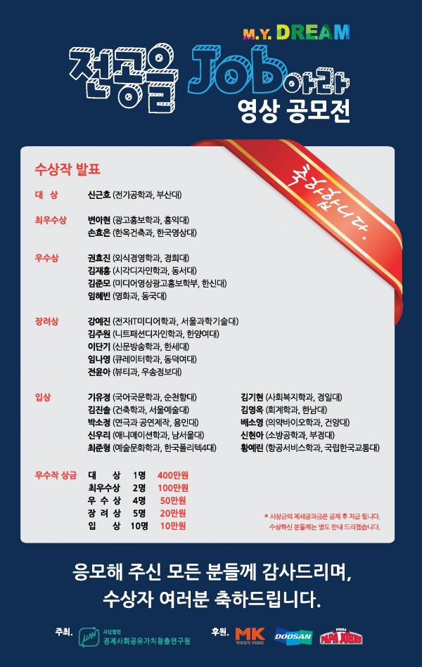 다음 M.Y. DREAM 전공을 JOB아라 공모전에서 뵙도록 하겠습니다.